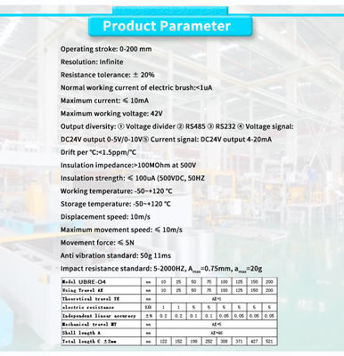 ·Ausgangsart des Widerstands: 1K Ω 5K Ω 10K Ω 20k Ω ·Ausgangsart der Spannung: externer oder interner Modul: 0-5V 0-10V ·Ausgangsart des Stroms: externer oder interner Modul:4-20mA 1-20mA 0-20mA Zwei-Draht-Drei-Draht-System Dieser Sensor ist ein absoluter Positionsmesstyp, der für die direkte Messung von Position und Länge in Regulierungs- und Messsystemen verwendet wird, die Strom- und Spannungssignale ausgibt. Sie kann auch durch integrierte oder externe V/I-Umwandlungsmodule in Standard-Gleichstromsignale von 5V~0V, 10~0V oder 20~4MA umgewandelt werden.20-1mA kann angepasst werden, und das Stromsignal kann die Anforderungen der Fernübertragungssteuerung erfüllen. ·Digitaler Ausgangstyp: RS232, RS485. Standardmodbus Standardversandresistives Spannungssignal,Stromversorgung 5V oder 10V, Ausgang 0-5V oder 0-10V. Wenn Sie 12V/24V Strom und Ausgang 0-5V, 0-10V, 4-20mA liefern müssen, müssen Sie ein Modul senden. Bitte hinterlassen Sie eine Nachricht oder konsultieren Sie den Kundendienst bei der Bestellung.- Ich danke Ihnen.!